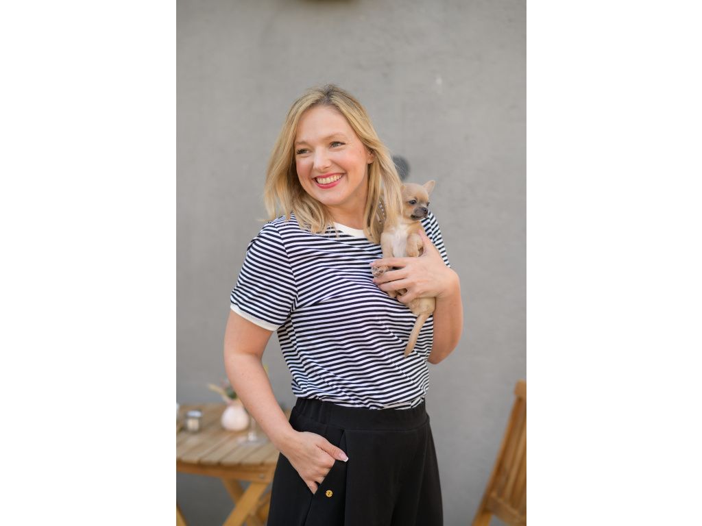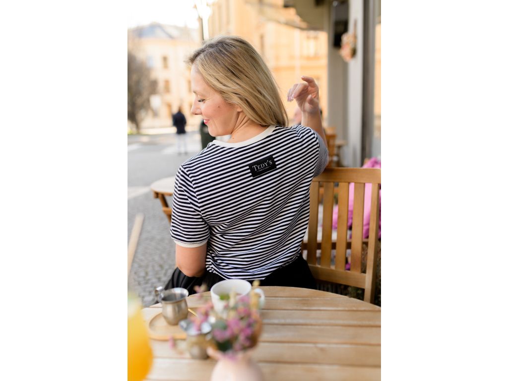 Stylové dámské proužkované tričko Marine z vysokogramážní bavlny. Nadčasový střih, kontrastní lemy a materiál, který krásně drží tvar a po roky zůstane jako nové.